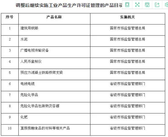 2.調(diào)整后繼續(xù)實施工業(yè)產(chǎn)品生產(chǎn)許可證管理的產(chǎn)品目錄(共計10類)