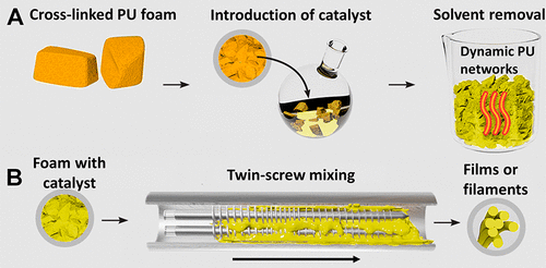 為了擴大回收利用的可能性,來自明尼蘇達大學和伊利諾斯州西北大學的科學家們設計了一種工藝,他們首先將聚氨酯泡沫廢料跟催化劑溶液混合,這使得泡沫具有延展性。